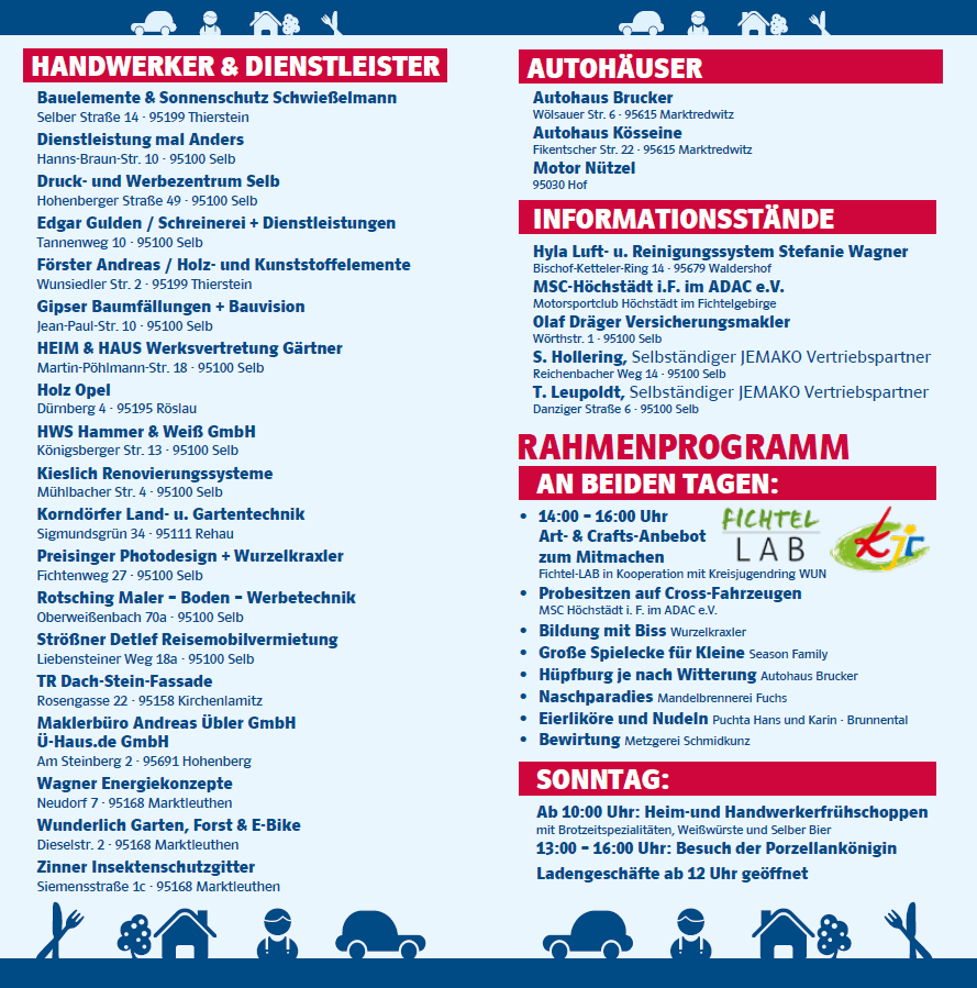 Am Samstag 14. und Sonntag 15. März 2026 findet zum 19. Mal die Handwerkermesse & Autoschau, das „Schaufenster der Region 2026“ auf dem Gelände und in der Ladenstraße des Outlet Center Selbs statt.